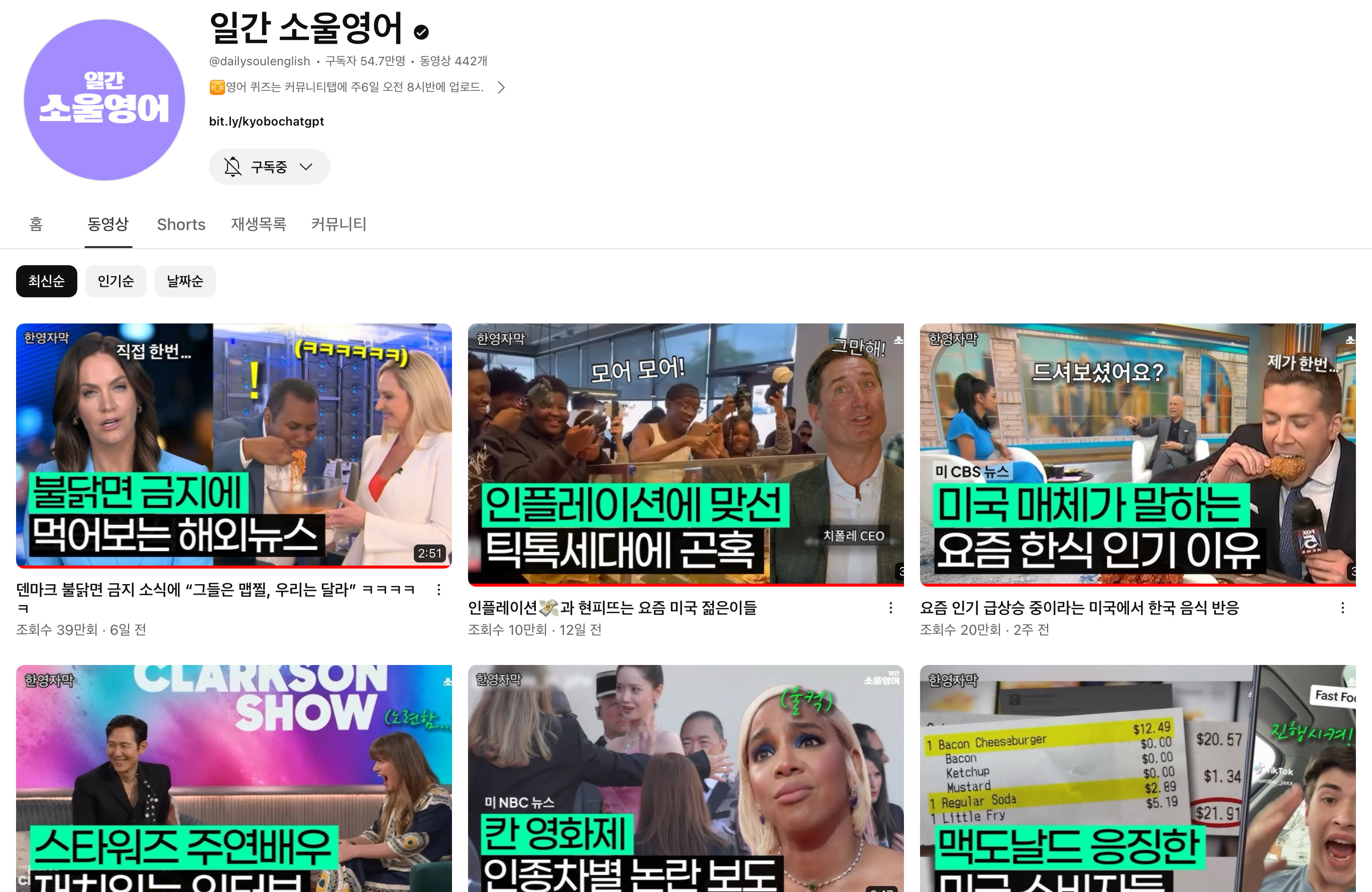 내가 하고 싶은 말은 영어권 나라에 살아도 영어를 늘리기 위해서는 영어공부를 해야 한다는 사실이다. 특히나 나와 같이, 모르는 사람과 수다를 좋아하지 않는 사람은 더더욱 그렇다. 그리고 나는 영어콘텐츠를 많이 소비하지 않는다. 주로 한국 드라마와 예능을 보고 주말을 내내 보내면 월요일 출근하기 전 약간 불안하다. 그럴 때 나는 주로 유튜브에 일간 소울영어 재생목록을 틀어놓는다. 일간 소울영어를 추천하는 이유는 몇 가지가 있다. 첫째는 채널 운영자의 지적능력과 통찰력이 뛰어나다. 그래서 영어를 배우는 것뿐 아니라 사회나 문화에 대한 시야를 넓히는데 도움이 된다. 둘째는 시사를 반영하여 해외에서 화제 되는 뉴스를 접할 수 있다. 물론 이런 콘텐츠들은 많지만 거기에 더해 영어까지 배울 수 있으니 더 좋은 것이다. 셋째는 지극히 개인적인 이유인데 운영자의 목소리가 좋다. 나는 하이톤의 목소리를 듣기 싫어해 여성 진행자들이 진행하는 프로그램은 잘 보지 않는데 이 진행자는 목소리가 저음이고 신뢰감을 주어 좋아한다. 채널 운영자의 이름은 레바 김인데 호주에서 공부하시고 지금은 뉴질랜드에 어린 딸을 데리고 정착하신 걸로 알고 있다. 책도 여러 권 쓰신 걸로 알고 있는데 영상이 자주 올라오지 않는 것이 흠이라면 흠이다.