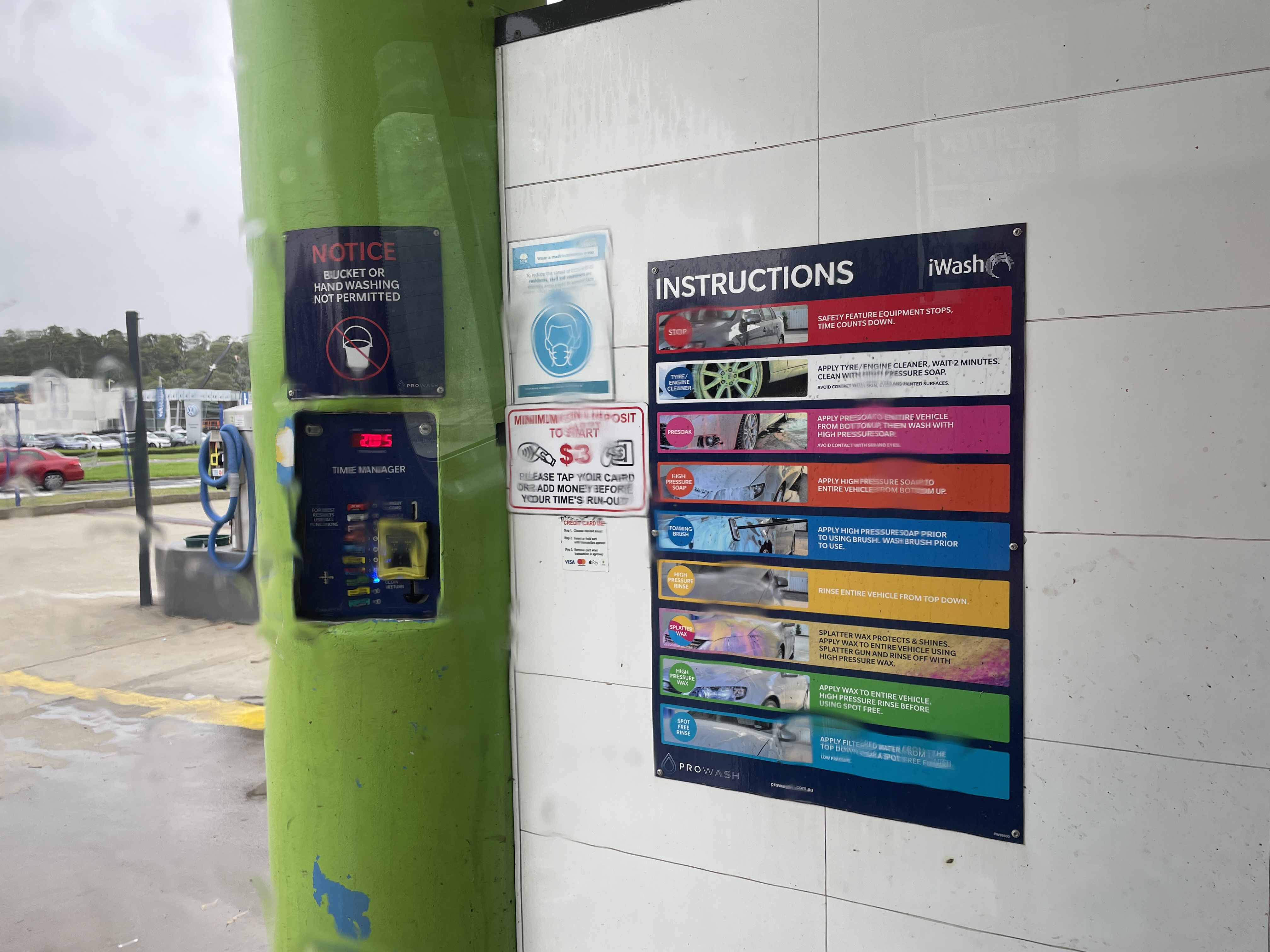 가다가 중간에 캠벨타운에 들러 캠퍼벤 세차를 했다. 돈을 넣으면 금액만큼 시간이 주어지고 프로세스에 따라 세차를 하는 시스템이다. 정확히 남자친구를 5분 도와주다가 물 맞는 게 싫어 차 안으로 들어와 버렸다. 어차피 프로세스당 한 사람만 일할 수 있는 시스템이다. 예를 들어 거품 내는 차례에는 빗자루 하나에서만 거품이 나오므로 두 사람이 같이 일할 수 없다. 시간제인데 당연하지 않은가. 드라이브 스루 자동세차를 손으로 한다고 보면 된다. 자기 차 세차는 전혀 안 하는 사람이 왜 캠퍼 벤 세차는 열심히 하는지 잘 모르겠지만 차가 깨끗해지니 기분은 좋네.