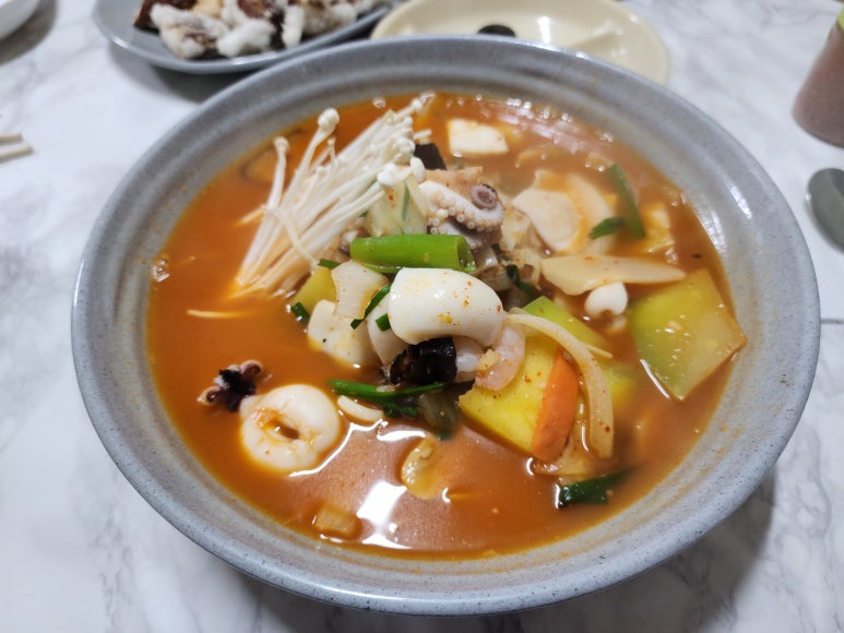 이곳의 대표 메뉴는 산낙지 짬뽕인데요. 시원한 연포탕 육수를 베이스로 한 개운한 국물에 무안에서 갓 잡은 산낙지를 통째로 넣어 끓여내는 것이 특징입니다. 살짝 데쳐진 낙지는 쫄깃한 식감을 자랑하며, 감칠맛이 살아 있는 짬뽕 국물과 조화를 이룹니다. 산낙지의 담백한 맛과 깊은 해물 국물이 어우러져 특별한 별미로 손꼽힙니다.
