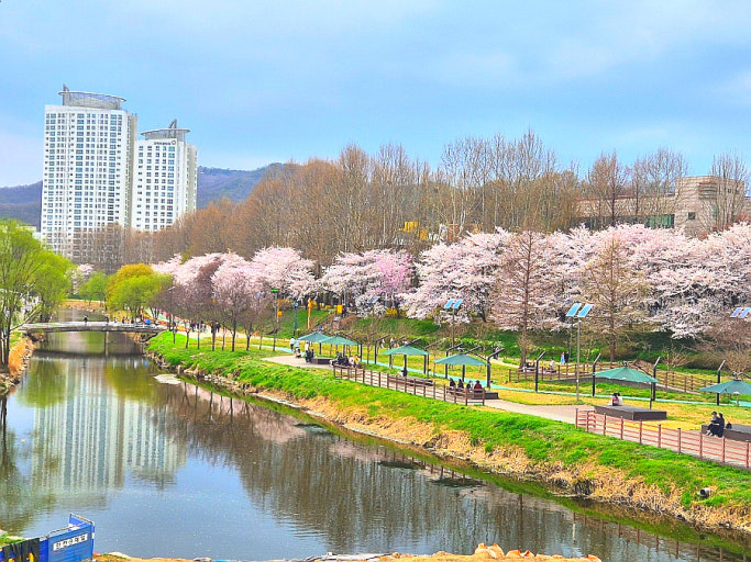 벚꽃이 만발한 양재천을 배경으로 펼쳐지는 야외 조각전은 자연과 예술의 아름다운 조화를 경험할 수 있는 기회입니다.